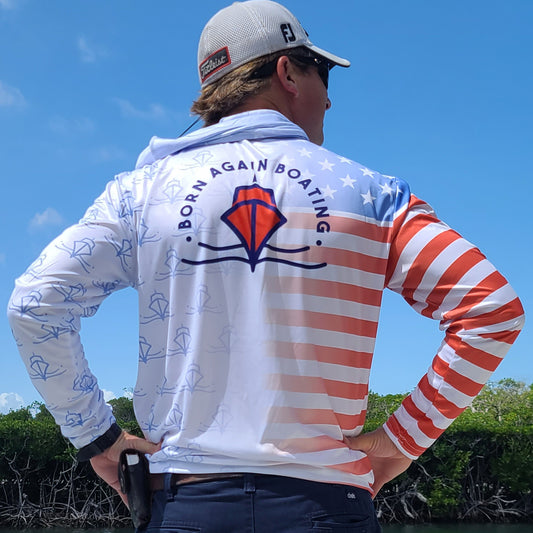 B.A.B Red, White, & Blue Long Sleeve Fishing Shirt